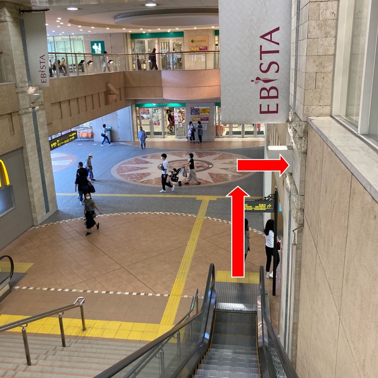 - エスカレーターを降りて、右折