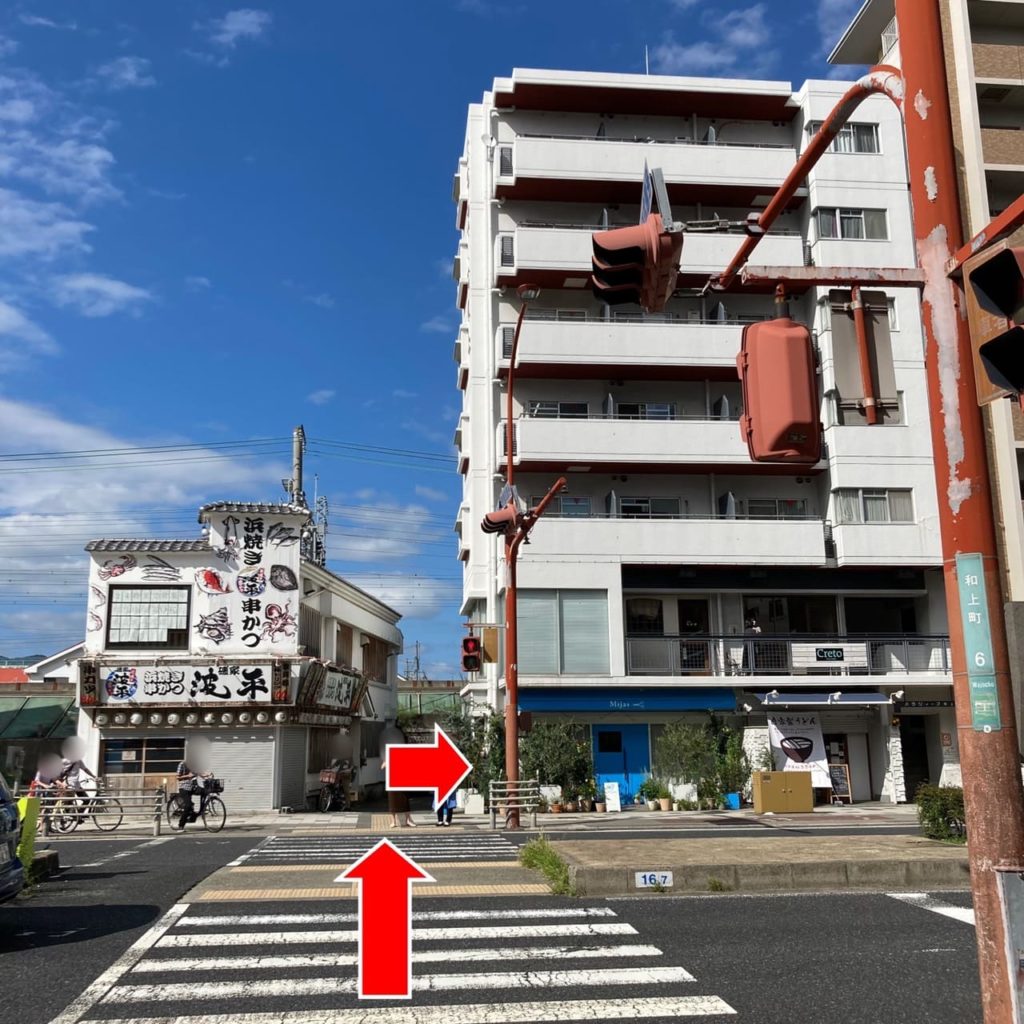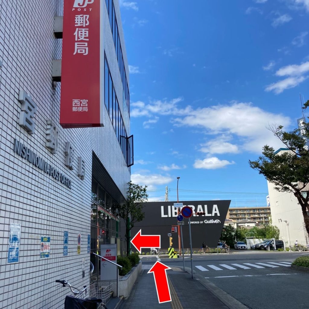 - 阪神西宮駅を出て直進し、郵便局を左折